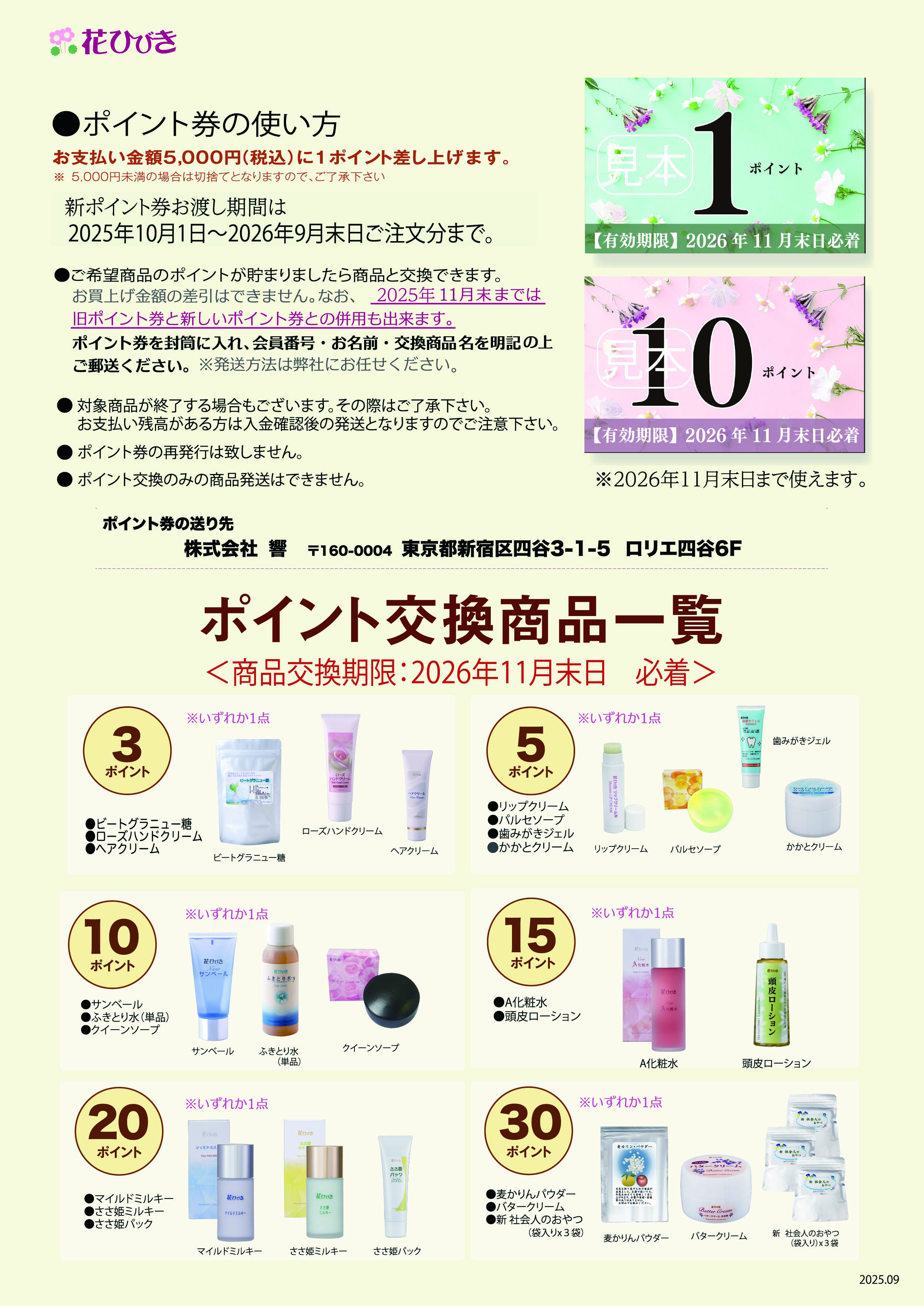 ●ポイント券を封筒に入れ、会員番号・お名前・交換商品名を 明記の上ご郵送ください。